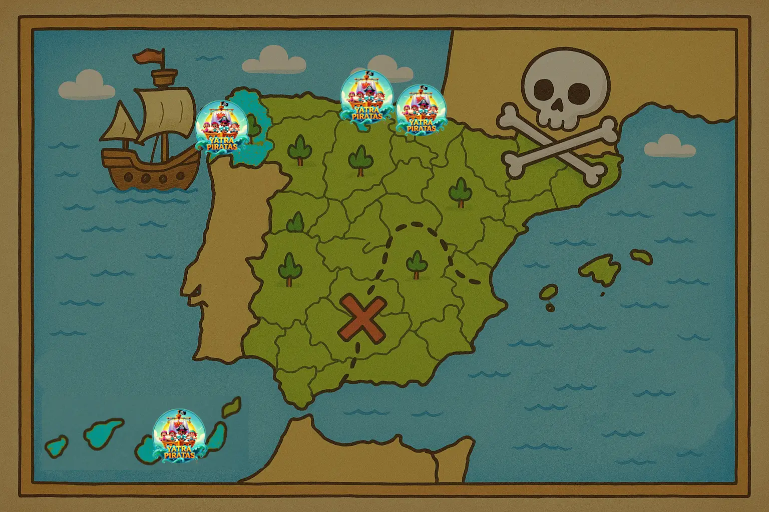Toca los logos de Yatra Piratas para conocer nuestras aventuras.